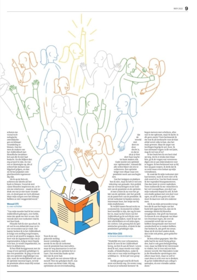 “Ik twijfel tussen fiscaal recht en econometrie. Econometrie schijnt heel moeilijk te zijn, dat zag ik somber in, maar na het lezen van het Zelfdenkboek ga ik toch bij de voorlichtingsdag kijken, want ik laat me niet afschrikken en wil mijn eigen lot creëren. Gek genoeg ben ik optimistischer geworden, al denk ik dat pessimisten gelukkiger zijn.” – Wessel (17) VWO scholier
