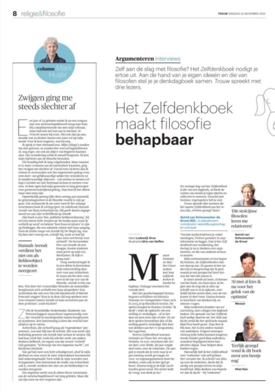 Zelf aan de slag met filosofie? Het Zelfdenkboeknodigt je ertoe uit. Aan de hand van je eigen ideeën en die van filosofen stel je je denkdagboek samen. Trouw spreekt met drie lezers.